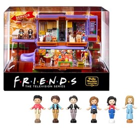 Polly Pocket Friends Schatulle - Central-Perk-Kaffeetasse, 6 Hauptdarsteller, 9 Zubehörteile, 3 Friends-Orte, ausstellbare Prem