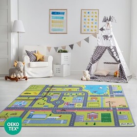 Feeti Floor® moderner Spielteppich Straße 1,0 x 2,0 m | Ökotex 100, geruchsneutral, Antirutsch | hochwertiger Teppich Kinderzim