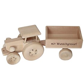 Geschenkissimo Traktor mit Anhänger - personalisiert mit Name - Spielzeug Trecker aus Holz mit Gravur für Kinder - Holzspielzeu