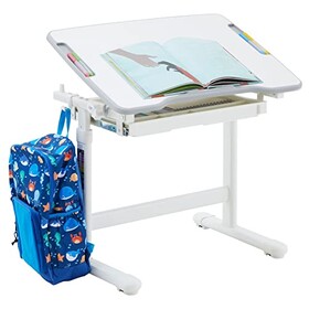 CARO-Möbel Kinderschreibtisch VITA in weiß/weiß höhenverstellbar und neigbar, Schreibtisch für Kinder mit Schublade, Tisch mit