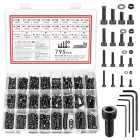 795 x Sechskantschrauben mit Muttern, M3 M4 M5 M6 Schrauben Set, Zylinderschrauben mit Innensechskant Schrauben Set, Schwarz Ma