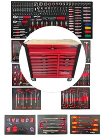 Kraftwelle Werkzeugwagen XXL + Werkzeug +12 Schubladen mit Soft Close Mechanik| 457 Teilig | Abschließbar | Davon 10 mit Werkze