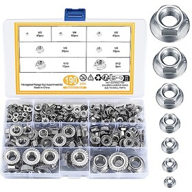 190 Stk Flanschmuttern mit Flansch und Sperrverzahnung, Sechskantflanschmutter Set, Sechskantmuttern Selbstsichernd Edelstahl,