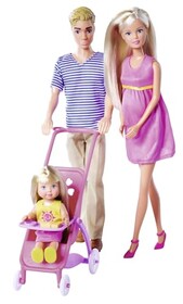 Simba 105733673 - Steffi Love Happy Family, Schwangere Spielpuppe, Kevin, Evi und Baby mit Kinderwagen, 11 Teile, Zubehör, 30cm