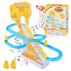 9 Stück Ente Treppensteigen Spielzeug, Enten Achterbahn, Duck Climbing Stairs Toy, Elektrische Enten Slide Track mit Licht und