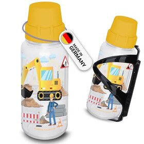 Fahrradflasche Kinder mit Halterung - Bagger - Trinkflasche Fahrrad, Flaschenhalter Fahrrad, Fahrrad Trinkflasche, Getränkehalt