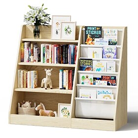 KEEPREAPER Kinderregal Bücherregal für Kinder 90x40x80cm, mit 5 Ablage und 4 offenen Fächern, Holz, Spielzeugregal, Spielzeug-O