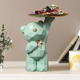 BIOSA Bären Skulptur mit Tablett, Niedliches Bären Tablett Deko, Bären Dekorative Ornamente, Geometrische Bärenstatue Bär Deko