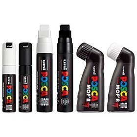 Posca Farbmarker, breite Spitze, MOP'R, PC-17K, PC-8K, Schwarz und Weiß, 6 Stück