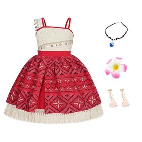 AYBUY Vaiana Kostüm Kinder, 4-teiliges Moana-Prinzessin-Kostümset, Mit Halskette, Haarnadel und Ohrringen, Cosplay Kostüme eign
