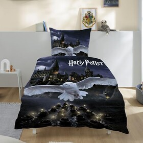 Biber/Flanell Bettwäsche-Set Harry Potter 135x200 80x80 cm · Kinderbettwäsche aus 100% Baumwolle · Motiv mit Eule Hedwig und Ho