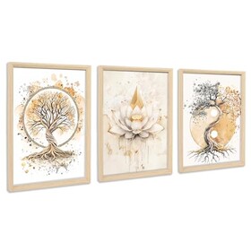 3 Pcs Lebensbaum Yin Yang Leinwand Bilder Mit Rahmen Malerei Poster Zen Buddhismus Beige Lotusblume Baum Bild Wandbilder Wohnzi