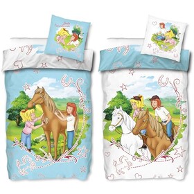 BERONAGE Bibi und Tina Kinder-Bettwäsche Sternenzauber Blau 135 x 200 + 80 x 80 cm 100% Baumwolle Biber-Flanell-Qualität Blocks