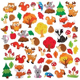 Baker Ross FX119 Waldtiere Moosgummi Sticker - 100 Stück, Großpackung Schaumstoff Aufkleber für Kinder zum Basteln, Gestalten u