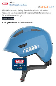 ABUS Kinderhelm Smiley 3.0 - Fahrradhelm mit tiefer Passform, kindergerechten Designs & Platz für einen Zopf - für Mädchen und Jungs Blau