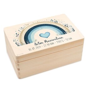 Baby Erinnerungsbox - tolle Holzkiste personalisiert Baby - 30 x 20 x 14 Holz - personalisierte Erinnerungskiste - Boho Regenbo