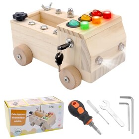 HENGBIRD Montessori Holz Schraubbrett Auto-Lichtschalter, Motorikspielzeug Motorikbrett Montessori Busy Board Holzspielzeug Ler