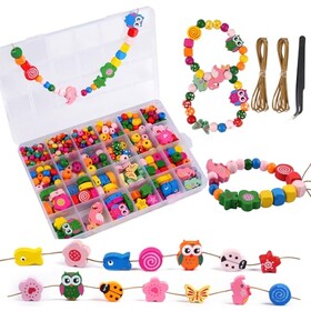 SUNRIZ Holzperlen zum Auffädeln 433 Stück, Bunt Perlen zum Auffädeln Kinder, Blumen und Tiere Holzperlen mit Schnur, für DIY Ar