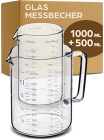 Praknu Glas Messbecher mit Ausguss - 1L & 500ml - Hitzebeständig & Mikrowellengeeignet - Präzise Skala - Ideal zum Backen, Koch