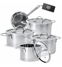 Moritz & Moritz 5-teiliges Kochtopfset inkl. 4 Glasdeckel - Edelstahl Topfset Induktion & alle Herdarten - stylische Töpfe mit