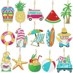 15 Stück Doppelseitig Diamond Painting Anhänger,Hawaiianische 5D DIY Diamant Malerei Schlüsselanhänger Kits für Kinder Erwachse