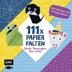 111 x Papierfalten – Drache, Meerjungfrau, Hexe und Co.: Bastelblock mit Anleitungen und 111 bunten Papieren zum Sofort-Loslege