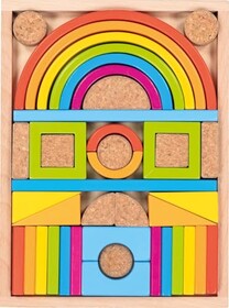goki 58353 - Bausteinkasten Kunterbunt aus Holz und Kork, Lernspielzeug für Formen, Farben & Motorik, fördert Kreativität & Ges
