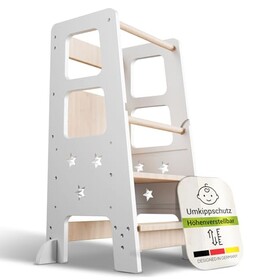 Juskys Lernturm Henny - für Kinder ab 1 Jahr, Stehhilfe, 3-Fach höhenverstellbar, Umkippschutz, Küchenhelfer - Weiß