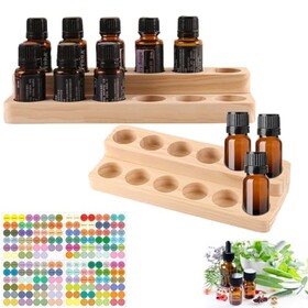 LEKEFETO 2 Ätherisches Öl Display Ständer: Aromatherapie Öle Hölzern Tragen Gestell, Doppelschichtige Aufbewahrungsbox für Äthe
