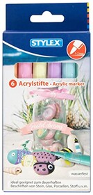 Stylex 32818 - Acrylstifte, Pastell, 6 Stück, in den Farben Ivory, orange, Mint, Azur, Rose, Flieder, Strichstärkte 1-2 mm, zum