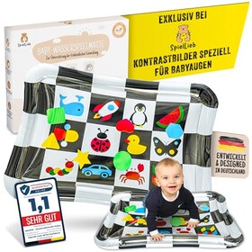 SpielLieb® Wassermatte Baby BPA frei – Babymatte XXL, Spielzeug ab 3, 6 & 9 Monate – Wasserspielmatte Baby mit Kontrastbildern