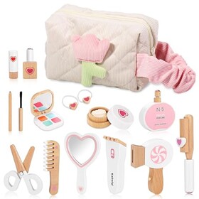 Holz Kinderschminke Set Mädchen, Holzschminke Spielset, Schminkkoffer Kinder mit Friseur Set, Schminkset für Kinder-Rollenspiel