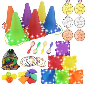 INSANYJ Outdoor Spiele für Kinder Kindergeburtstag, Spiele für Draußen - Eierlauf Spiel, Ringwurfspiel, Light Up Wurfspiel, Keg