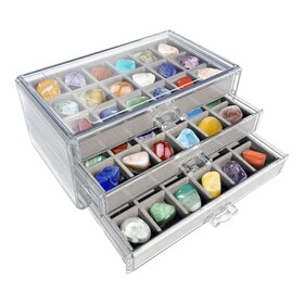 Vgvgaj 3 Lagige Edelstein Vitrine Kinder Rock Sammelbox Kristall Vitrine Steinvitrine 54 Fächern Visuelle Acryl Edelstein Vitri
