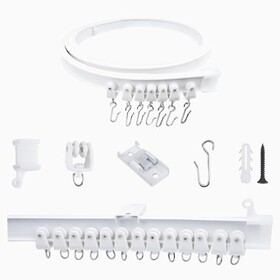 FOGAWA 2m Vorhangschiene mit 16 S Haken, Deckenvorhangschiene, Flexible Gardinenschiene, Gebogen, Deckenschiene für Vorhänge, D