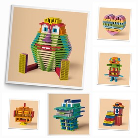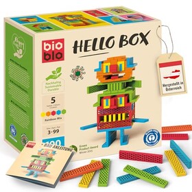 bioblo Nachhaltige Holzklötze Hello Box Rainbow 100 Stück | Steinbaukasten, Klötzchen, Geschenk für Familie, Kinder Geschenk We