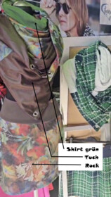 handgenähtes Set wie auf Foto: Langarmshirt aus grünem Stoff (gleicher wie im Tuch) + Karabinertuch + Rock / versandkostenfrei ab 129 €