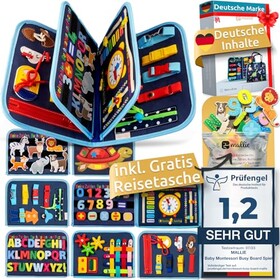 Mallie® Busy Board Deutsch inkl. Gratis Reisetasche & Montessori Buch und Perfekt für Reisen im Auto, Zug oder Flugzeug I100% B