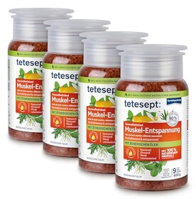 tetesept Meersalz Muskel-Entspannung – 4 x 600 g – Revitalisierendes Gesundheitsbad mit ätherischen Ölen – Entspannender Badezu