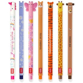 LEGAMI Set mit 7 radierbaren Gelstiften mit thermoempfindlicher Radiertinte, verschiedene Tintenfarben und Schaftdesigns, 0,7 m