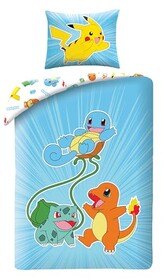 Bettwäsche Pokemon 135x200 + 80x80 · Pokémon Pikachu, Glumanda, Schiggy & Bisasam · KinderBettwäsche Set 2-teilig Bettbezug + K