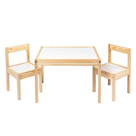 Ikea LATT-Kindertisch mit 2 Stühlen, weiß, Kiefernholz, beige
