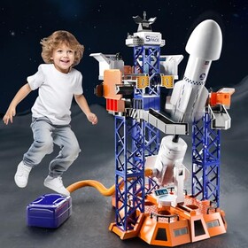 TEMI Rakete Spielzeug Raketenwerfer für Kinder 3 4 5 6 7 8 9, STEM-Weltraumspielzeug mit Startzentrum, Konsole, Satellit, Astro