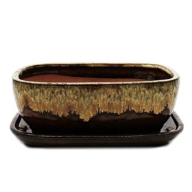Bonsai-Schale mit Unterteller Gr. 4 - Braun-Beige - rechteckig - Modell GB5 - L 26cm - B 20cm - H 9cm