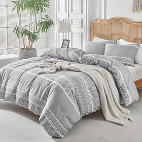 Lekesky Bettwäsche 200x220 - Bettbezug 200x220 cm, Bedding Muster Grau für Doppelbett mit Reißverschluss Kopfkissenbezug 80x80c