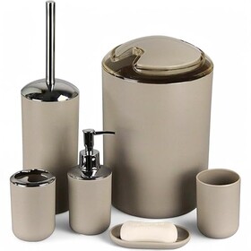 6tlg Badset Badezimmer Zubehör Set Organizer: Seifenspender, Zahnputzbecher, Kosmetikeimer, WC Bürste und Halter, Seifenschale,