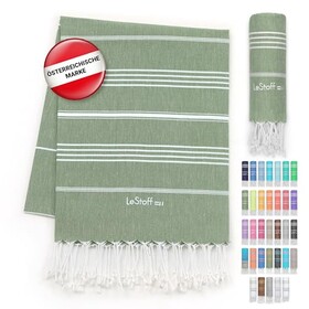 LeStoff Hamamtuch - 100% Bio-Baumwolle, 95 x 180 cm, Vorgewaschen, Saugstark, Schnelltrocknend, Leicht, Kompakt, Camping Handtu