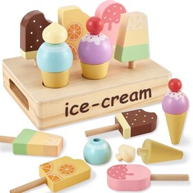 HERSITY Eiscreme Spielzeug Eisdiele Kinder Holz, EIS am Stiel Spielzeug Kaufladen Zubehör Spielküche Rollenspiele für Kind Mädc