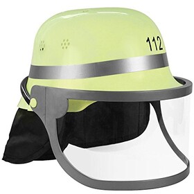 Trendario Feuerwehrhelm Für Kinder und Erwachsene, verstellbar mit Klappvisier & Nackentuch - Deutsche Ausführung in Gelb - ide