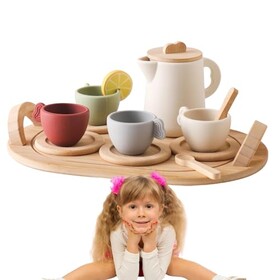 Tee-Party-Set für kleine Mädchen – Prinzessinnen-Spielzeug aus Holz für Teezeit | sicheres und lehrreiches Spielset für Kinder,